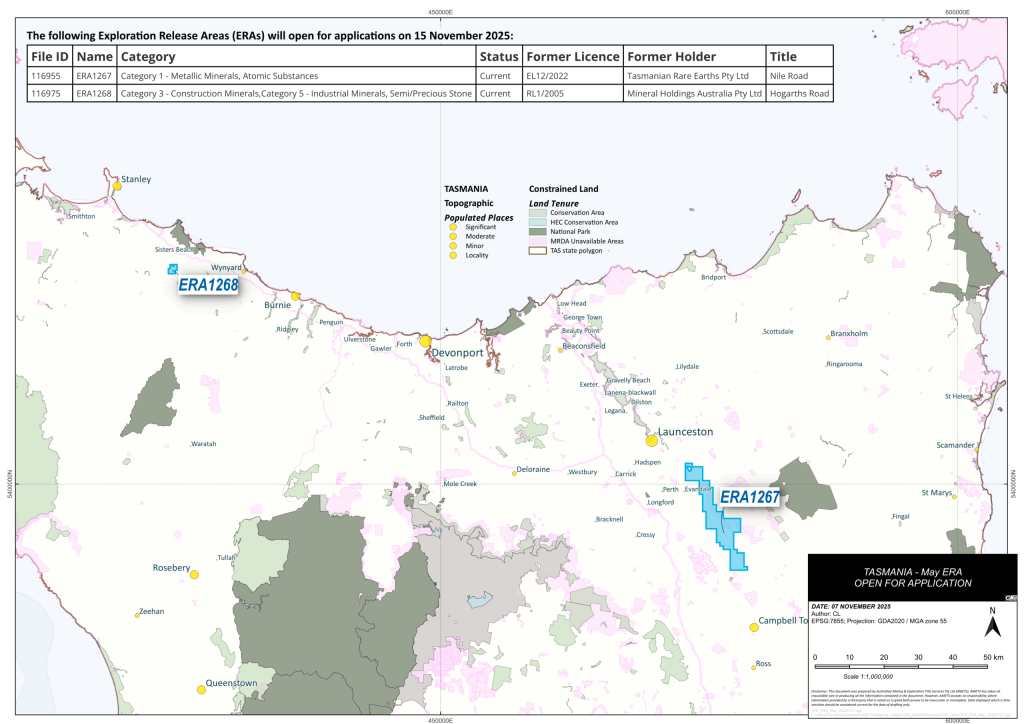 Mineral Resources Tasmania has announced that applications will be opening for two new Exploration Release Areas (ERAs), providing opportunities for new mineral discoveries crucial to sustaining Tasmania’s mining industry.